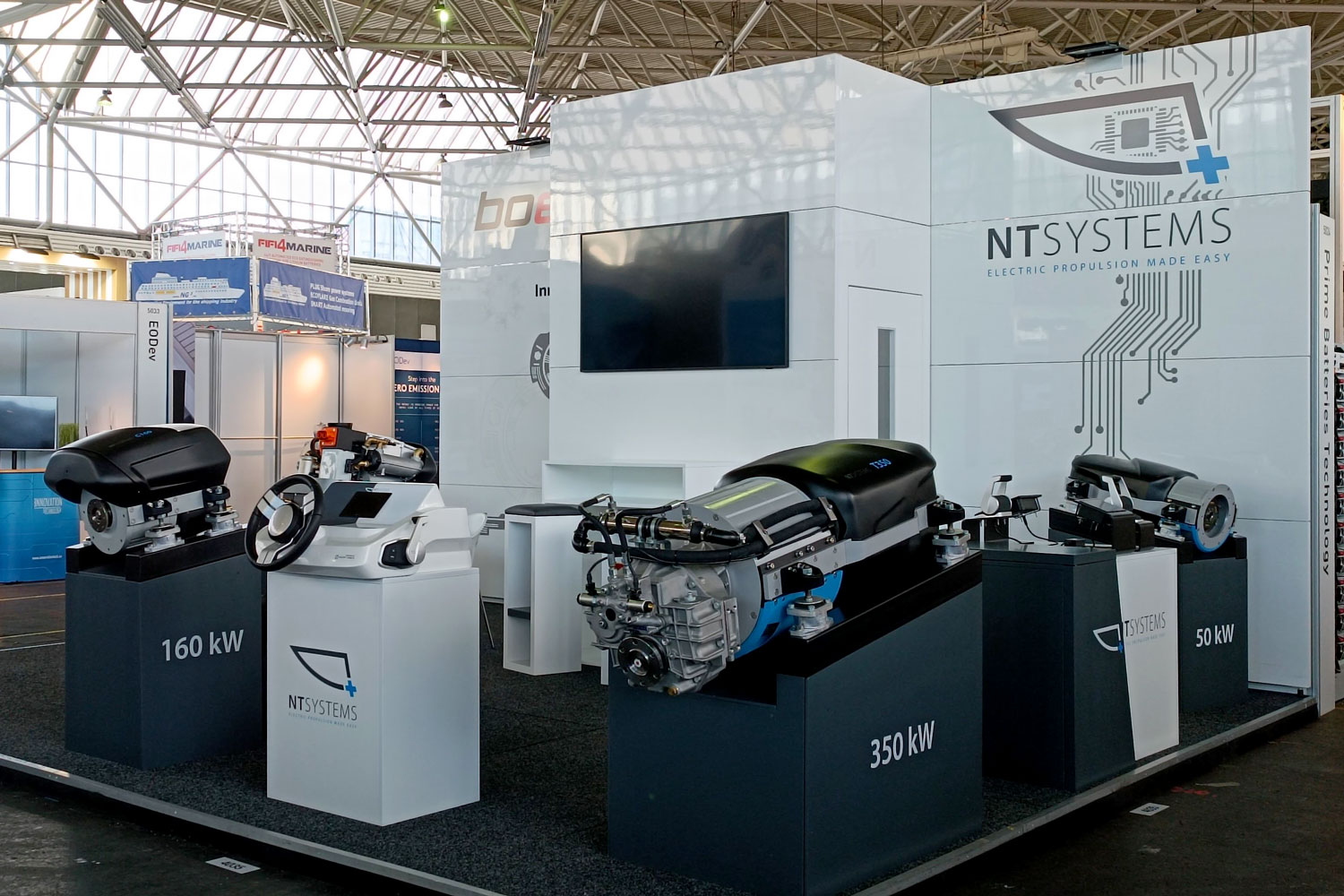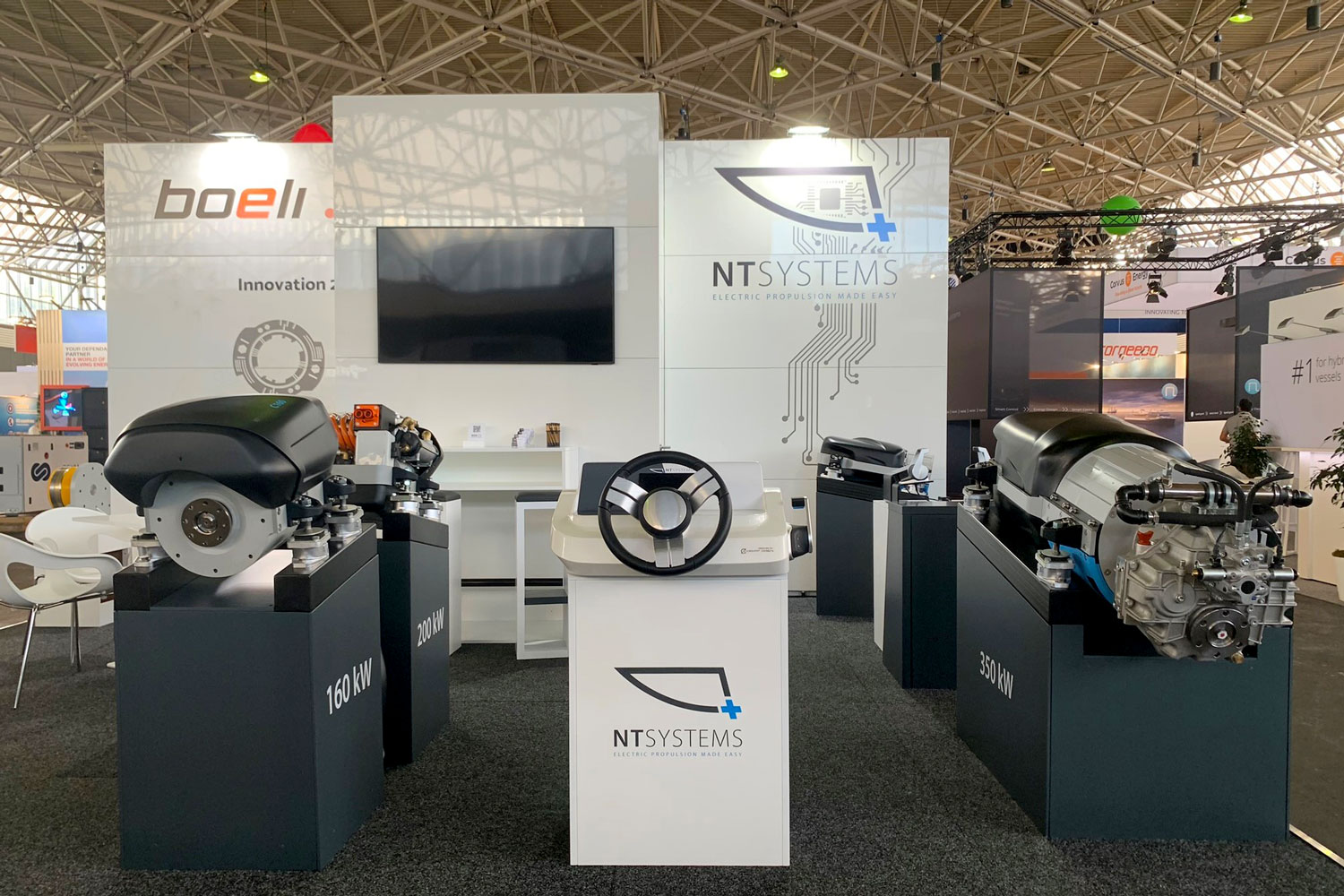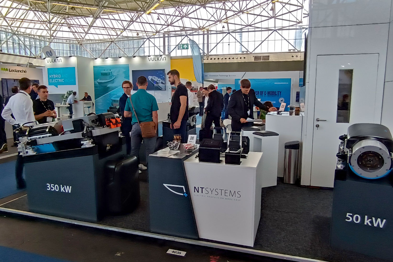 Our team showcased our latest offerings: a compact high-performance propulsion system with an output power of 160 or 200 kW, available in both thrust-bearing and gearbox versions. Additionally, we presented a side-mount throttle lever with left or right-side options. We received numerous positive feedback regarding our products, with a notable emphasis on exceptional design.